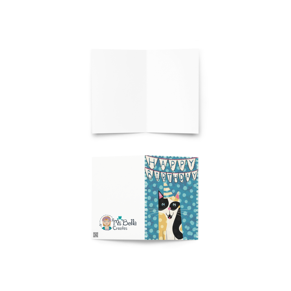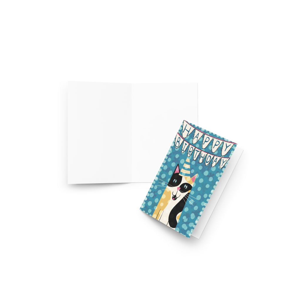 This goofy furrball wants to help you celebrate the birthday of your loved one. Designed and illustrated by me in Procreate, this fun 4x6 card is sure to elicit chuckles and smiles from the person receiving it. Printed and fullfilled by Printful, the card features a blank interior for you to personalize with your own good wishes.